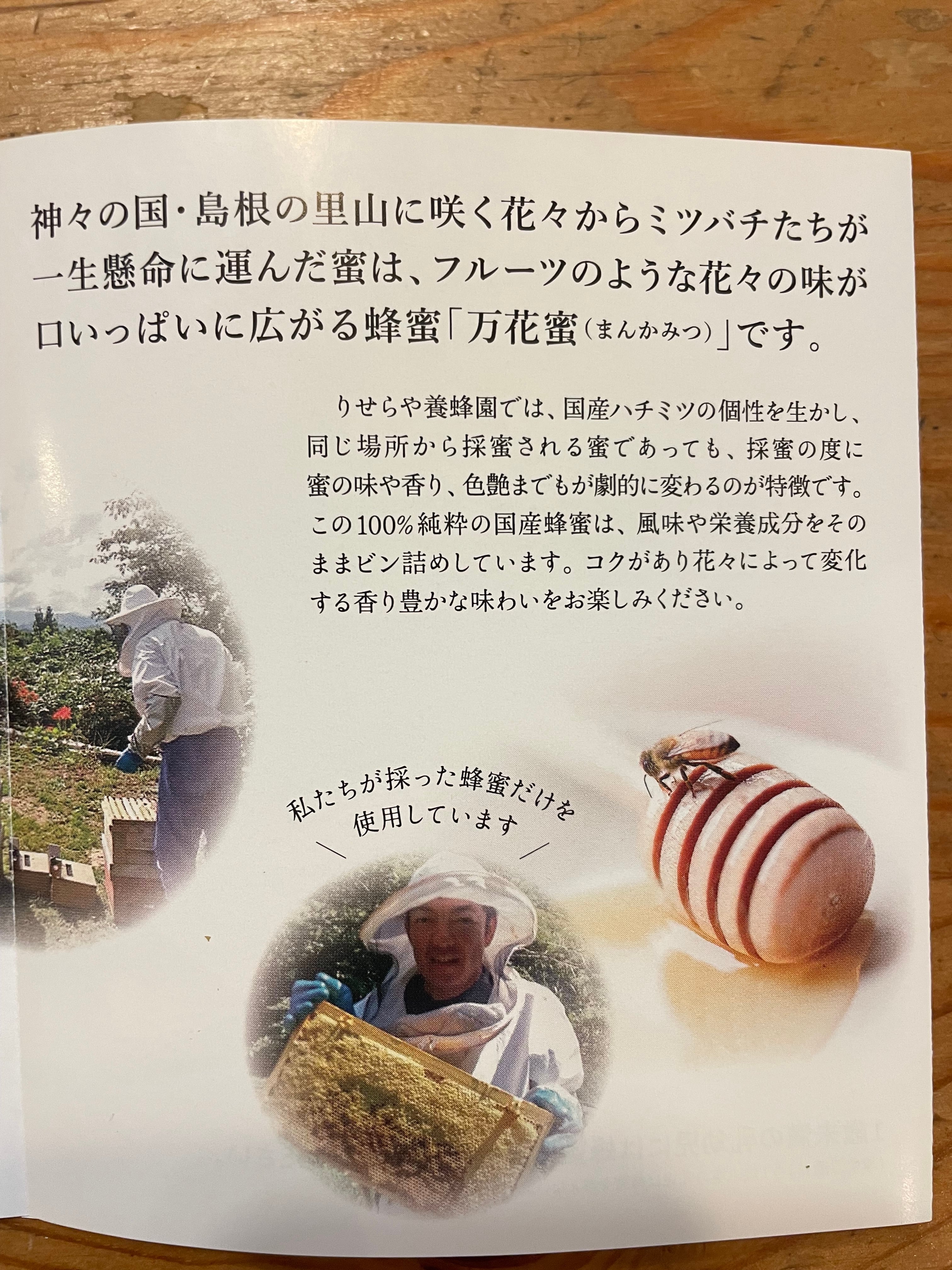 万花蜜は商品名の通り、一種類の花から集めた蜂蜜ではなく、ミツバチが季節ごとに咲く様々な自然の花から集めた蜜でつくったフルーティーな味わいの蜂蜜です。自然の営みから生み出させる100%純粋、本物の蜂蜜です。