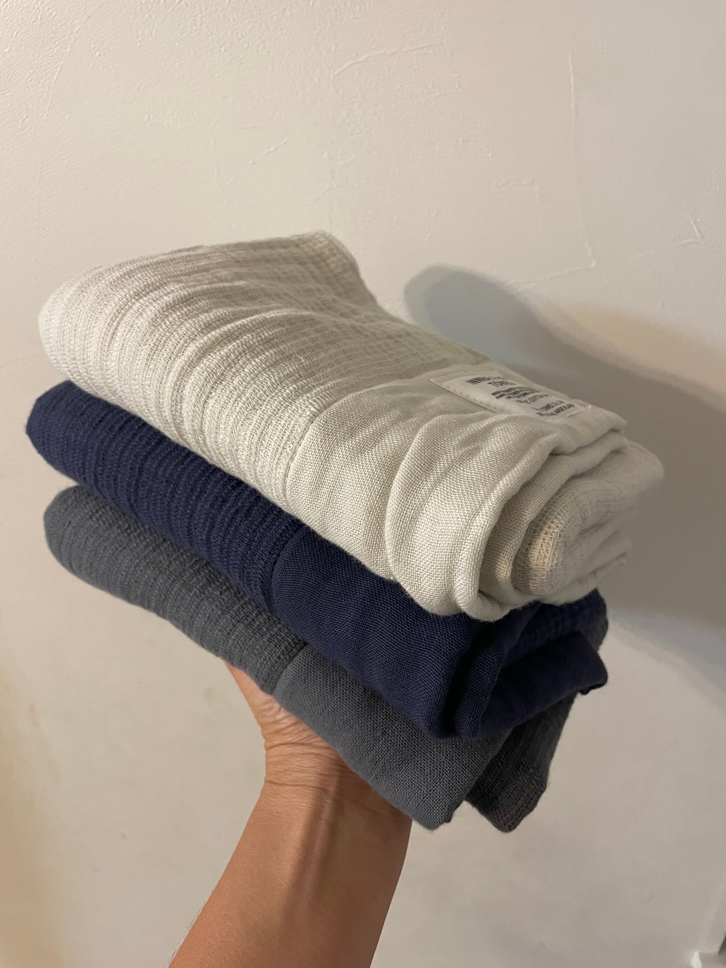両面のガーゼにパイルを挟み込むという独自の技術によって開発された「インナーパイル」。昔ながらのシャットル機を熟練の職人が手間暇をかけて織り上げていきます。表面のガーゼによる優しい肌触りと、中心のパイルが持つ高い吸水性。お風呂上がりや洗顔時をはじめ、枕カバーやブランケットとして使うなど、用途に応じて、さまざまなシーンで活躍してくれます。ボリュームがあるのに軽くて柔らかい、新しい発想のタオルです。